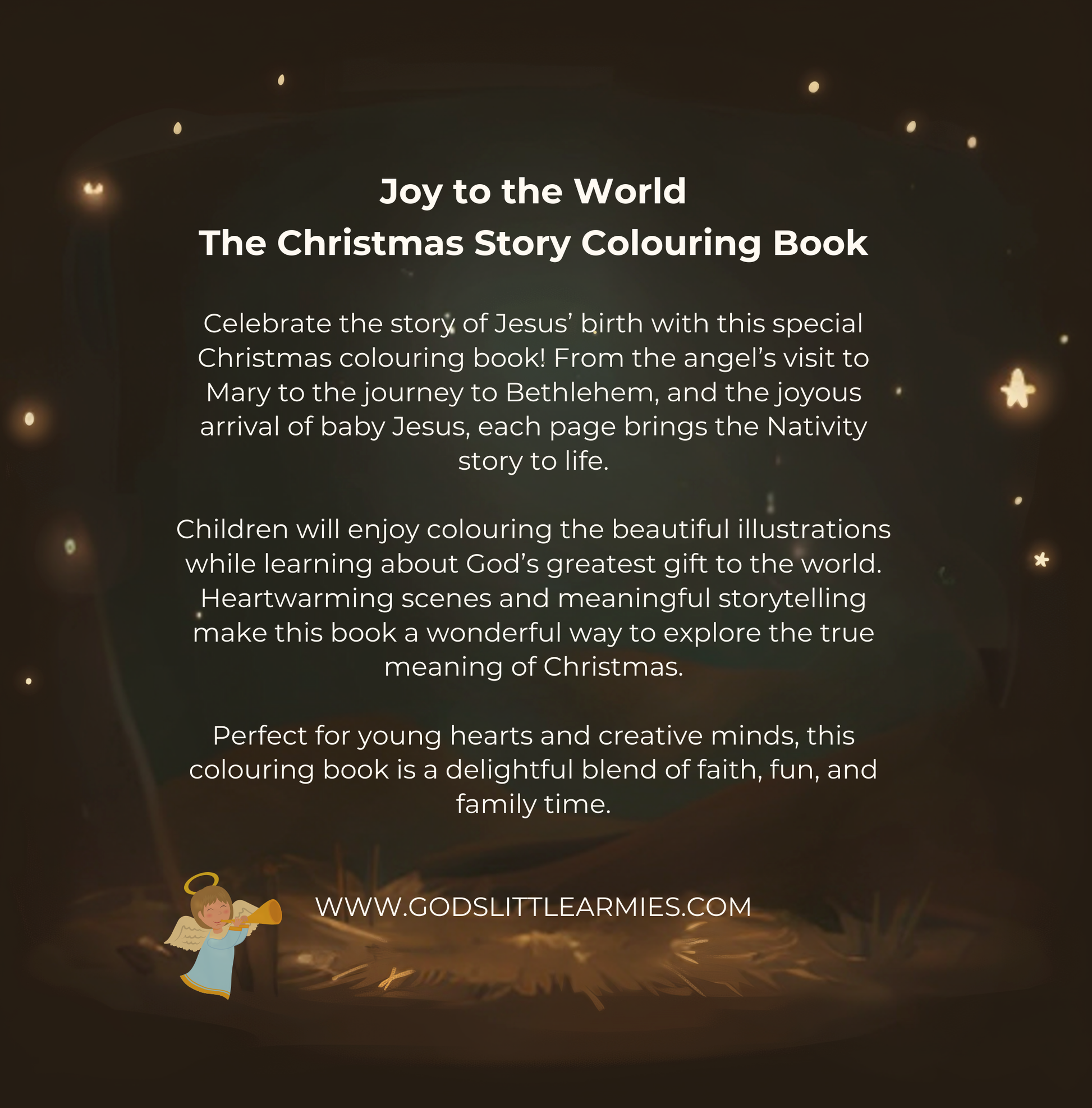 Designed to help children understand the true meaning of Christmas, this book blends creative expression with biblical truth—making it a wonderful resource for families, Sunday schools, and Christmas traditions.